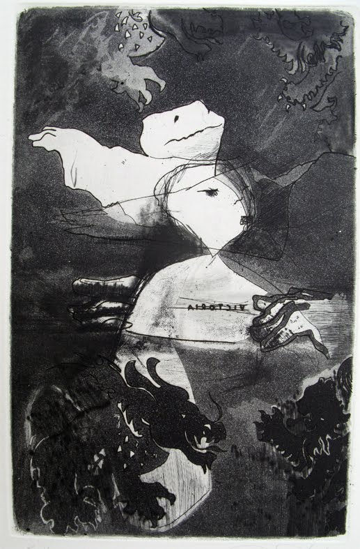 aguafuerte y aguatinta (aquí utilicé para crear el tono de fondo el spray)